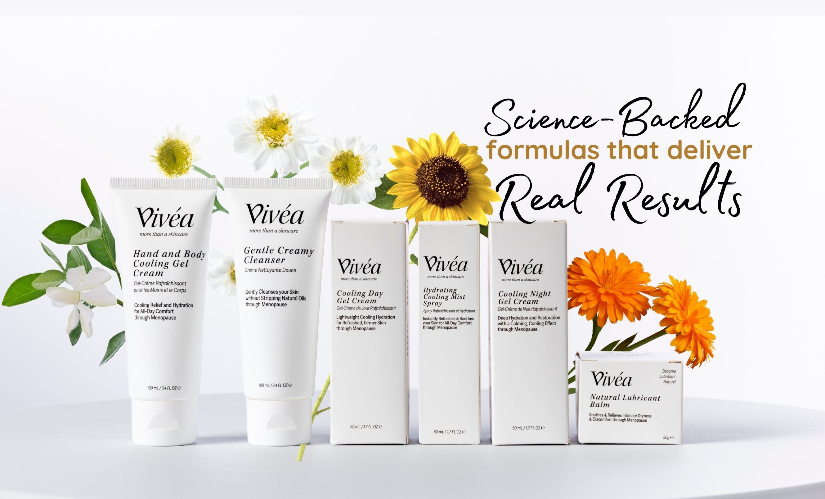 Cooling and hydrating actives provide instant relief from overheating, flushing, and night sweats — something unique to Vivéa.